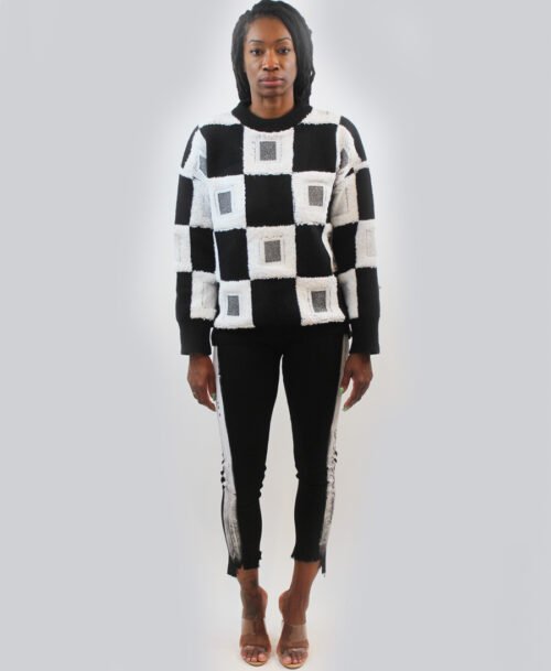 Checkered sweater with fuzz detail SL-345