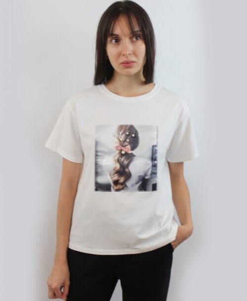 T-shirt with ribbon sleeves and dancing lady ST-679