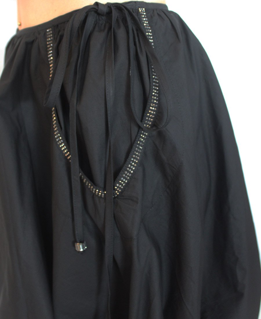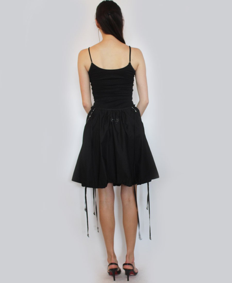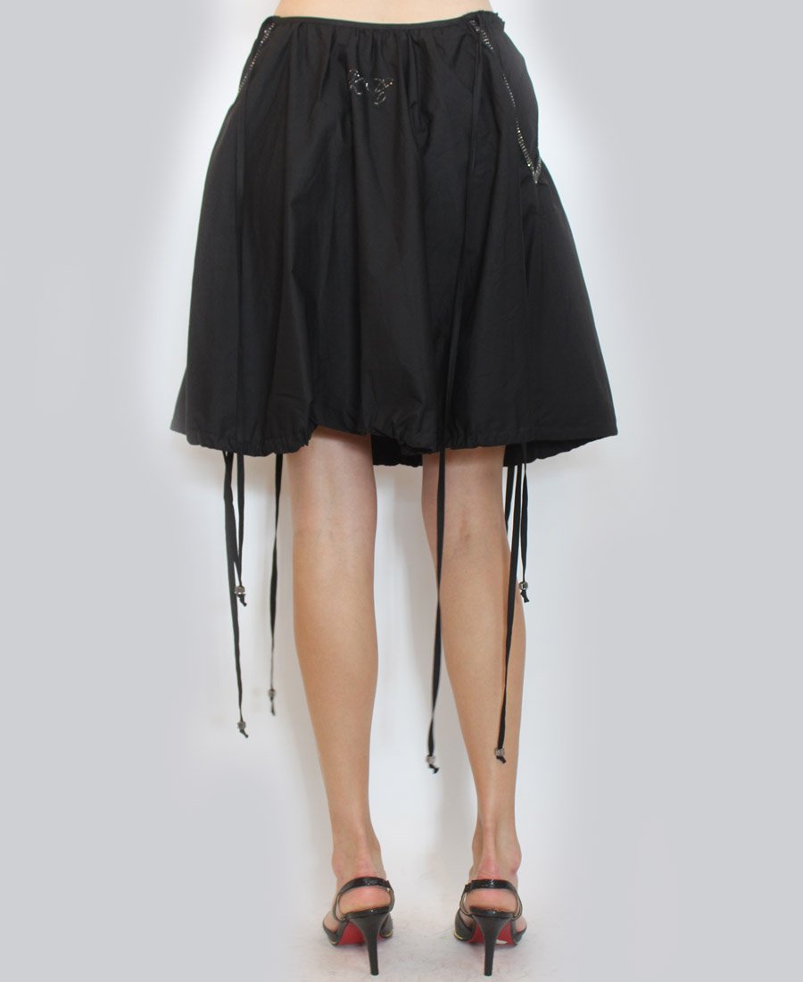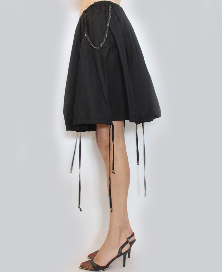 This gorgeous skirt features beaded trim side pockets and an adjustable tie hemline! Step out in style in this fashion-forward skirt!
