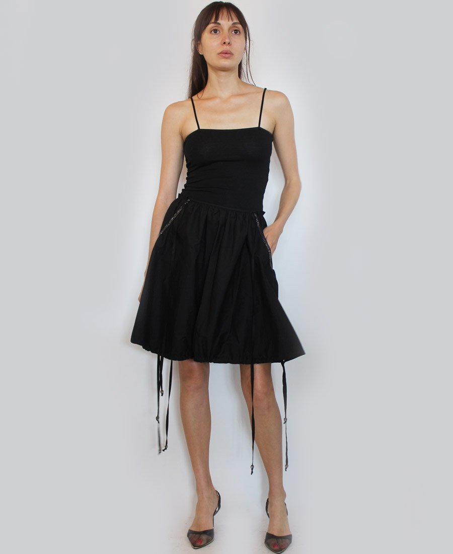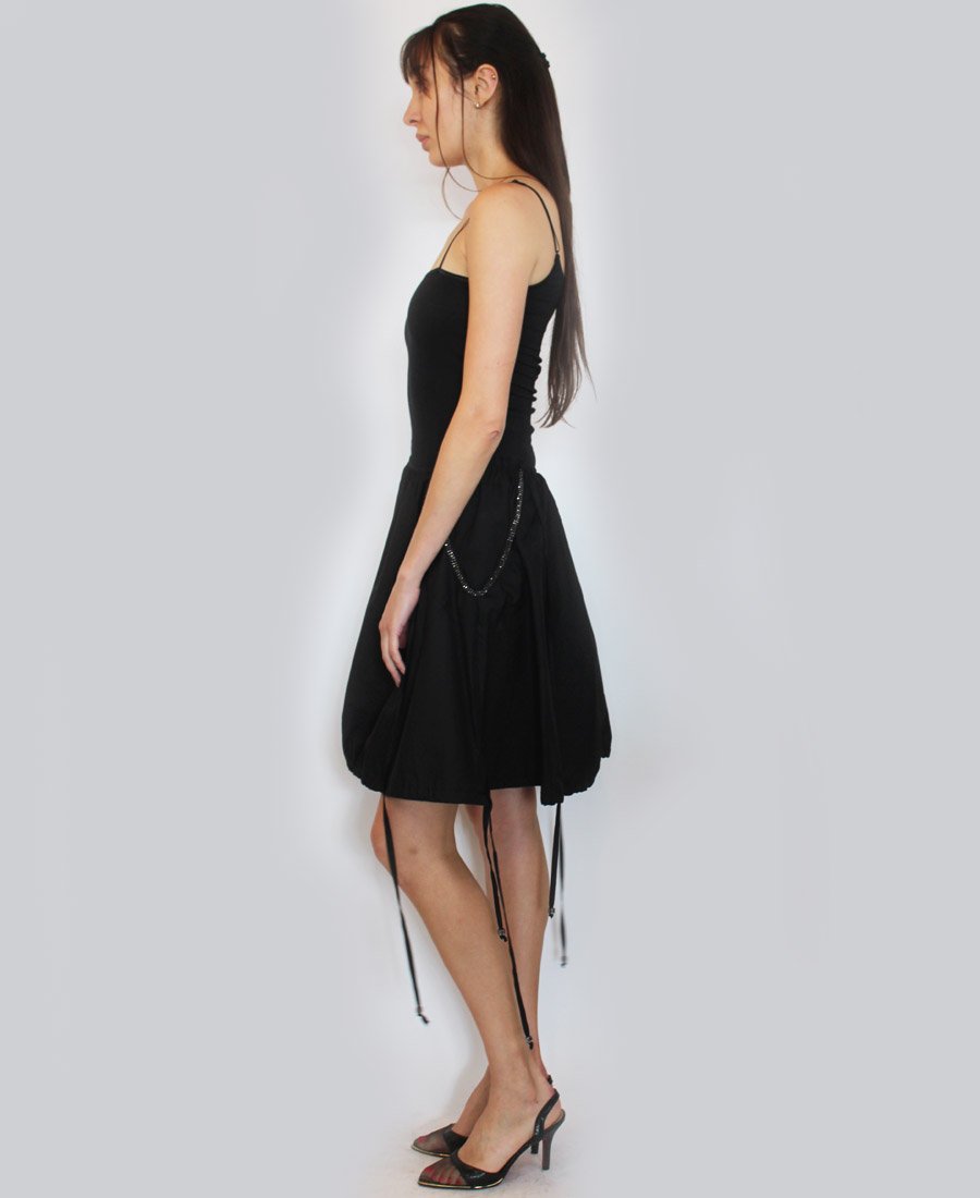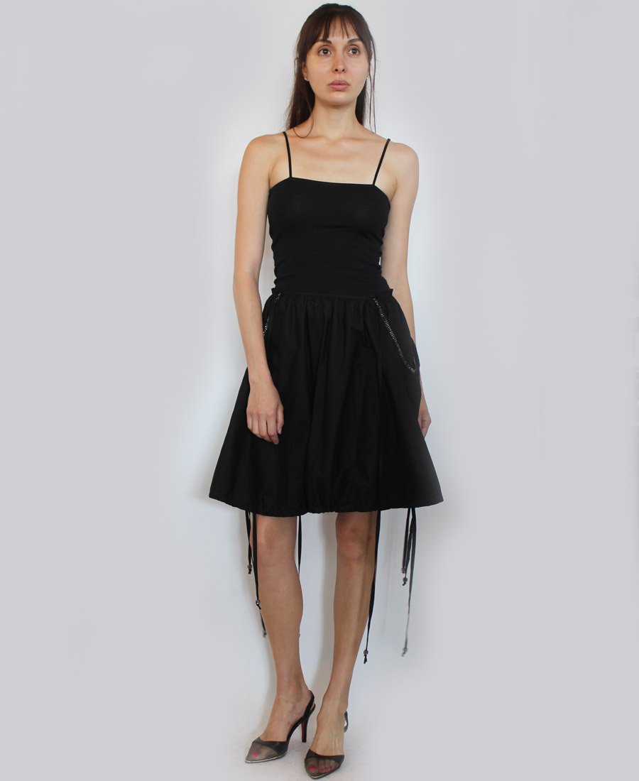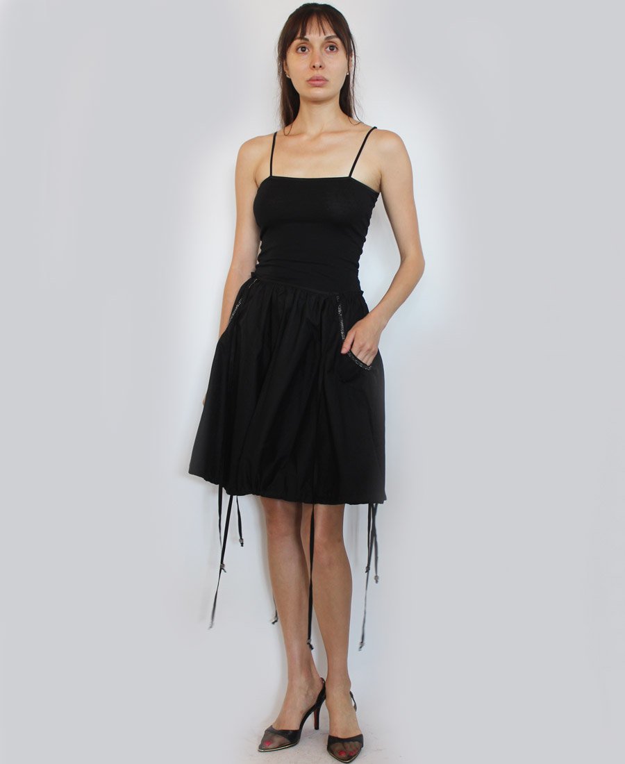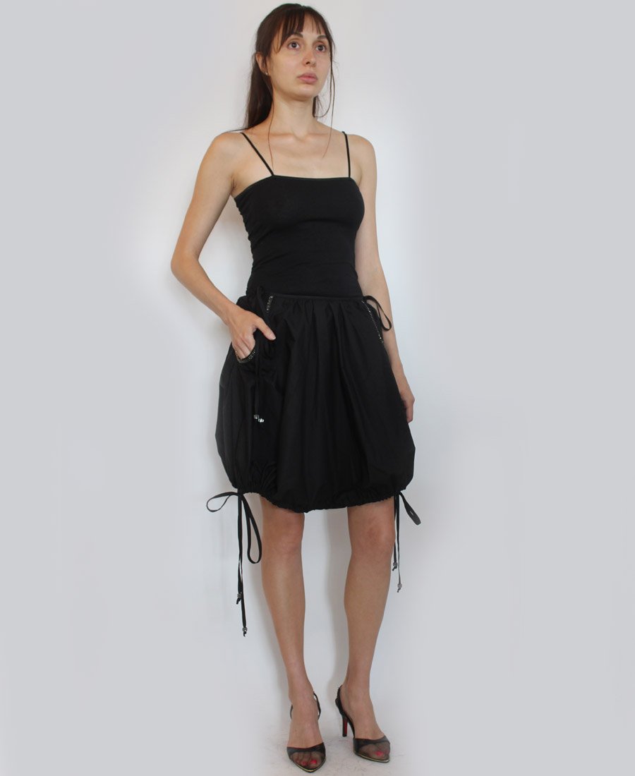 This gorgeous skirt features beaded trim side pockets and an adjustable tie hemline! Step out in style in this fashion-forward skirt!