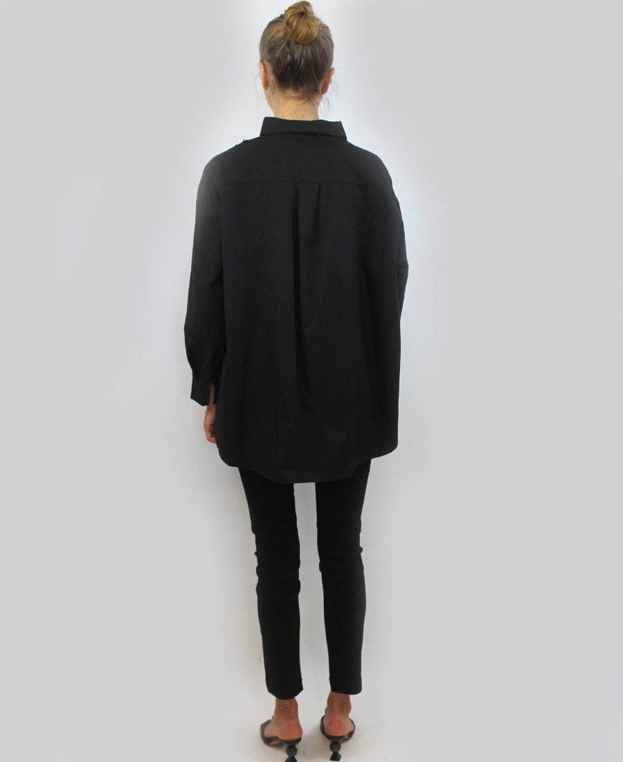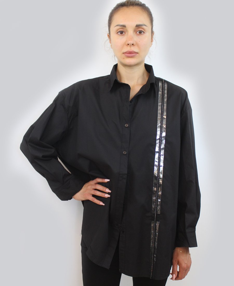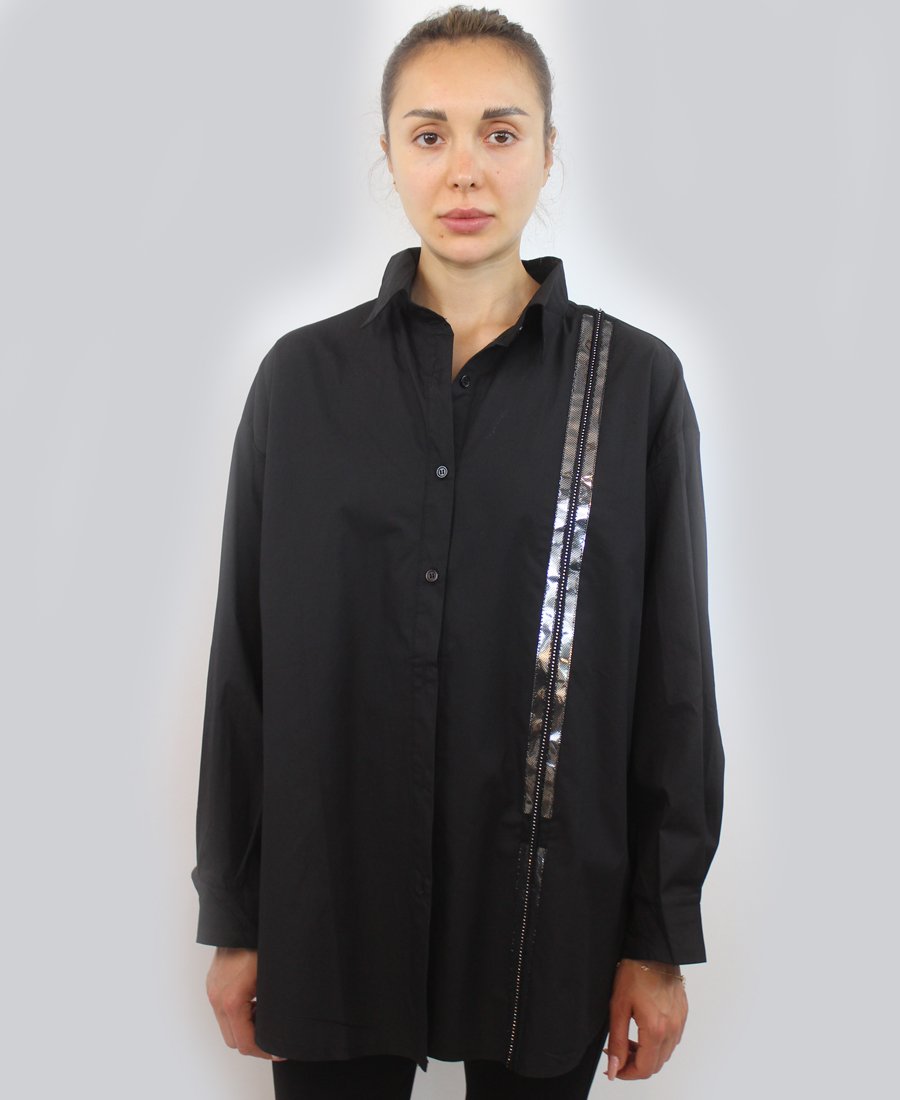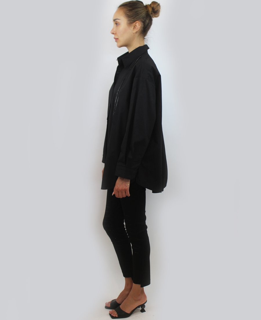 Collared button down with stripe detailing. Versatile button down can be worn casually as a cover up, or dressed up for a night out.