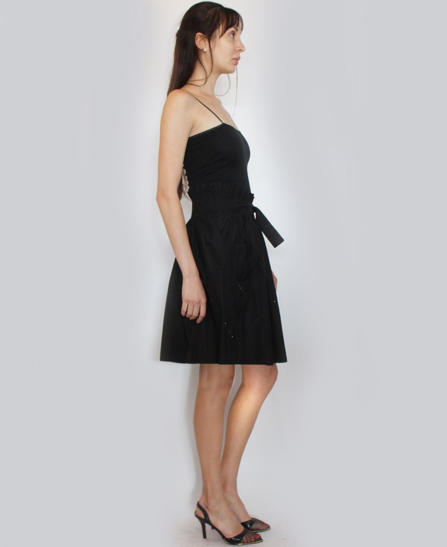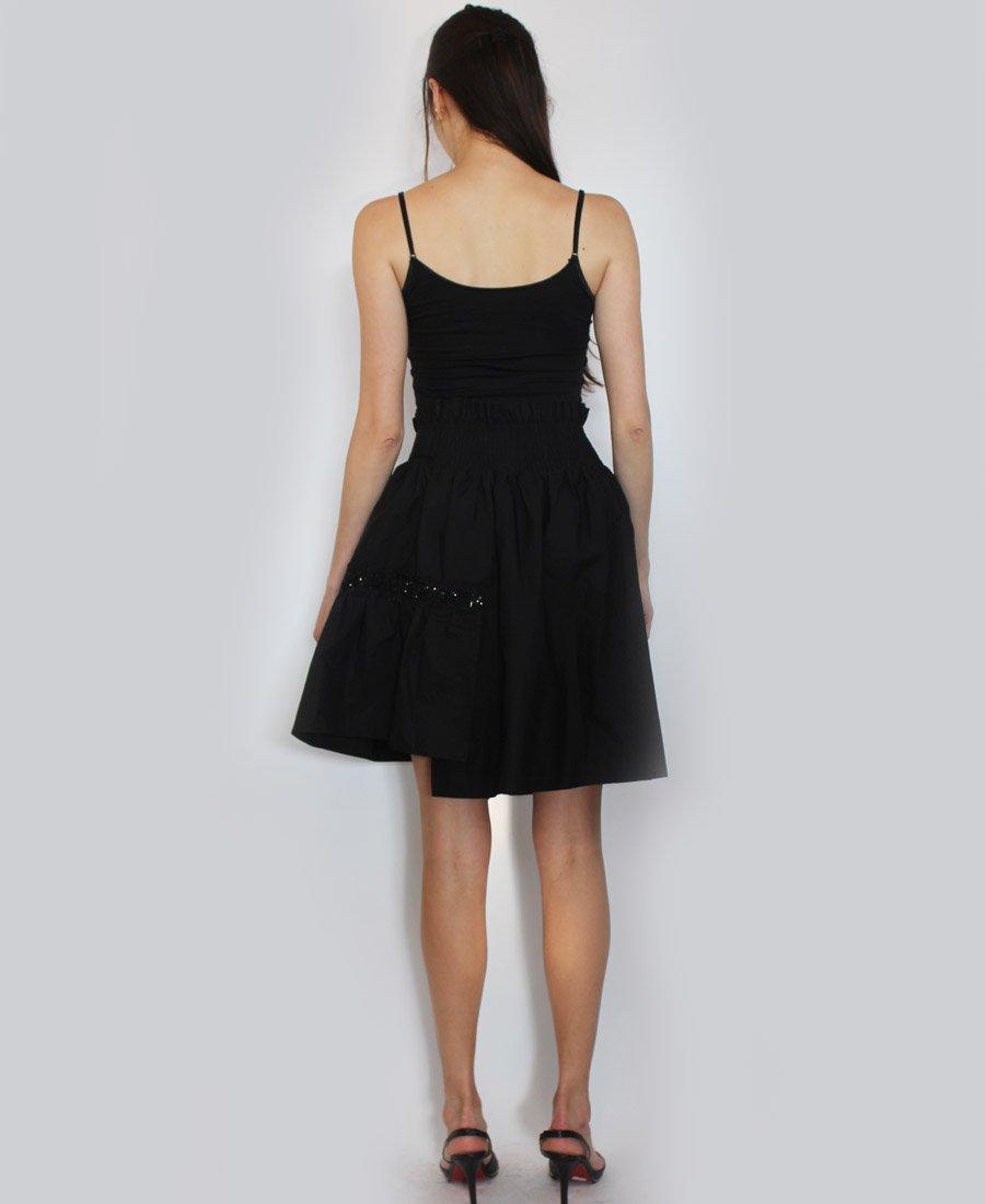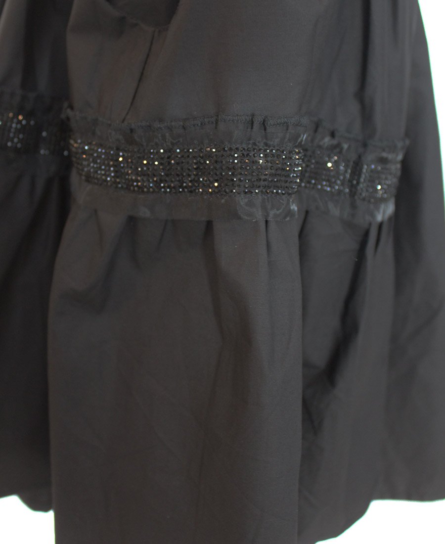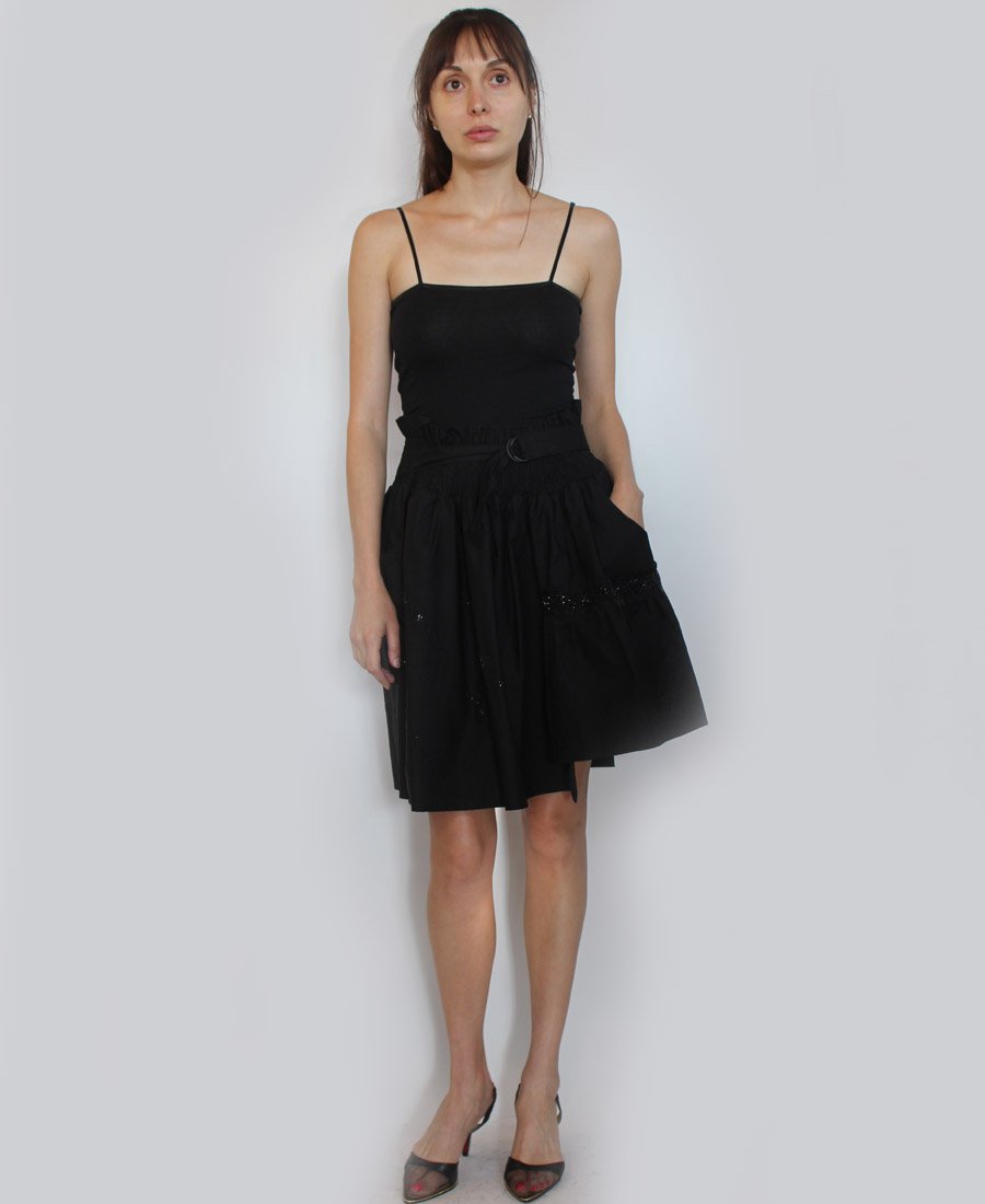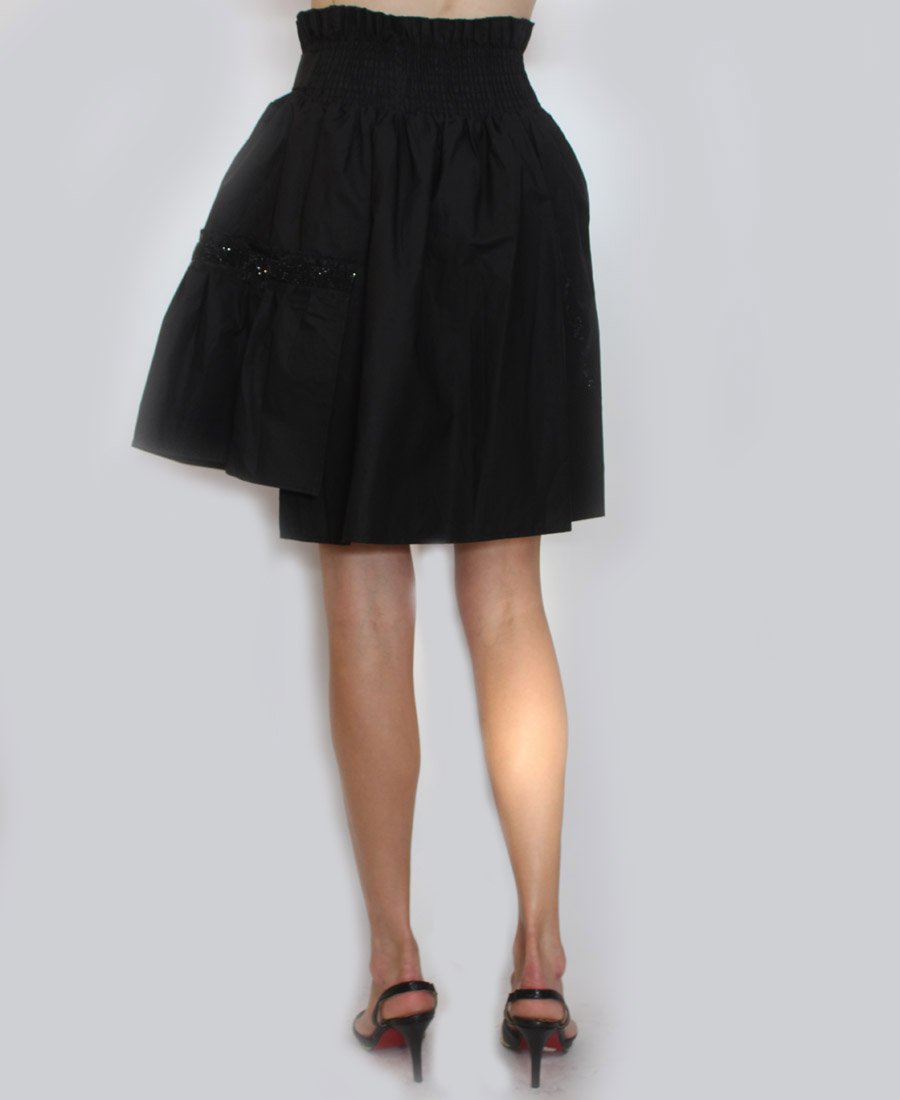 This stunning skirt features double pockets and an elastic waist with tie belt. The gorgeous French script beaded trim adds a touch of sparkle for day or night!