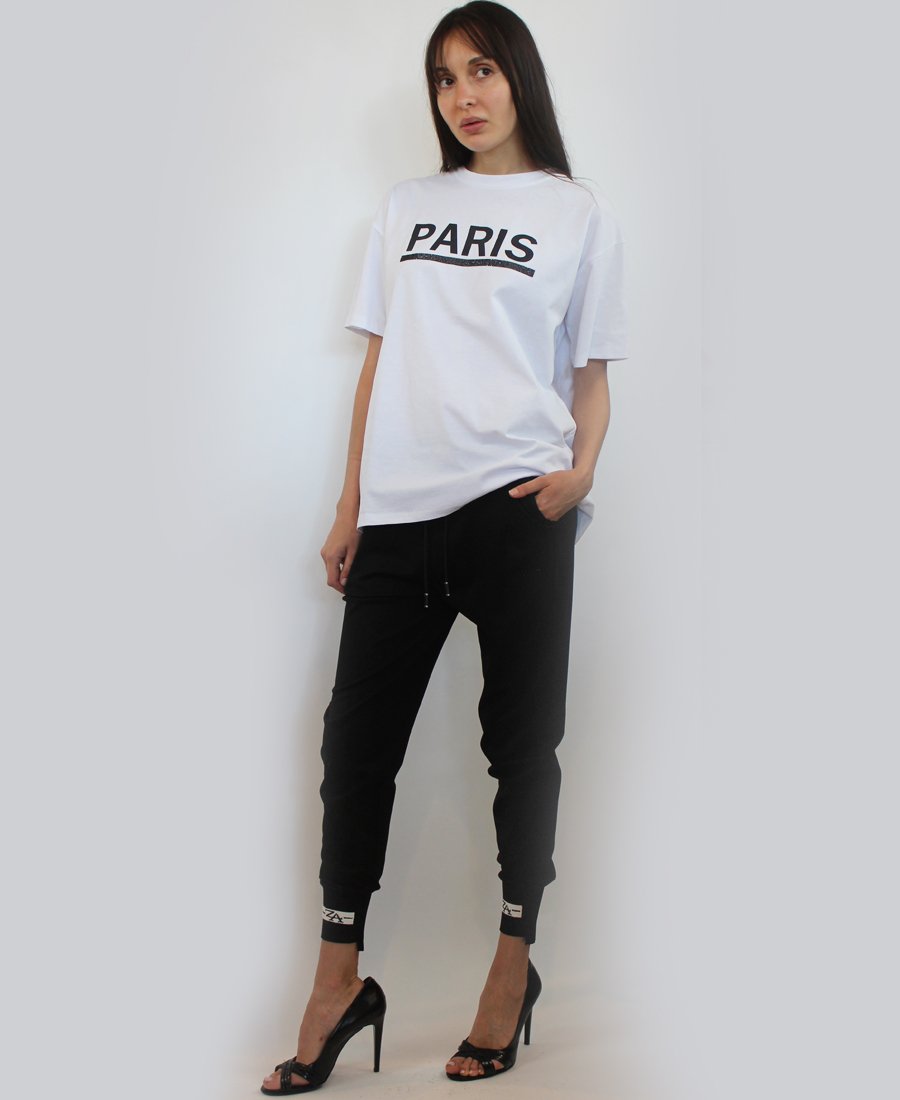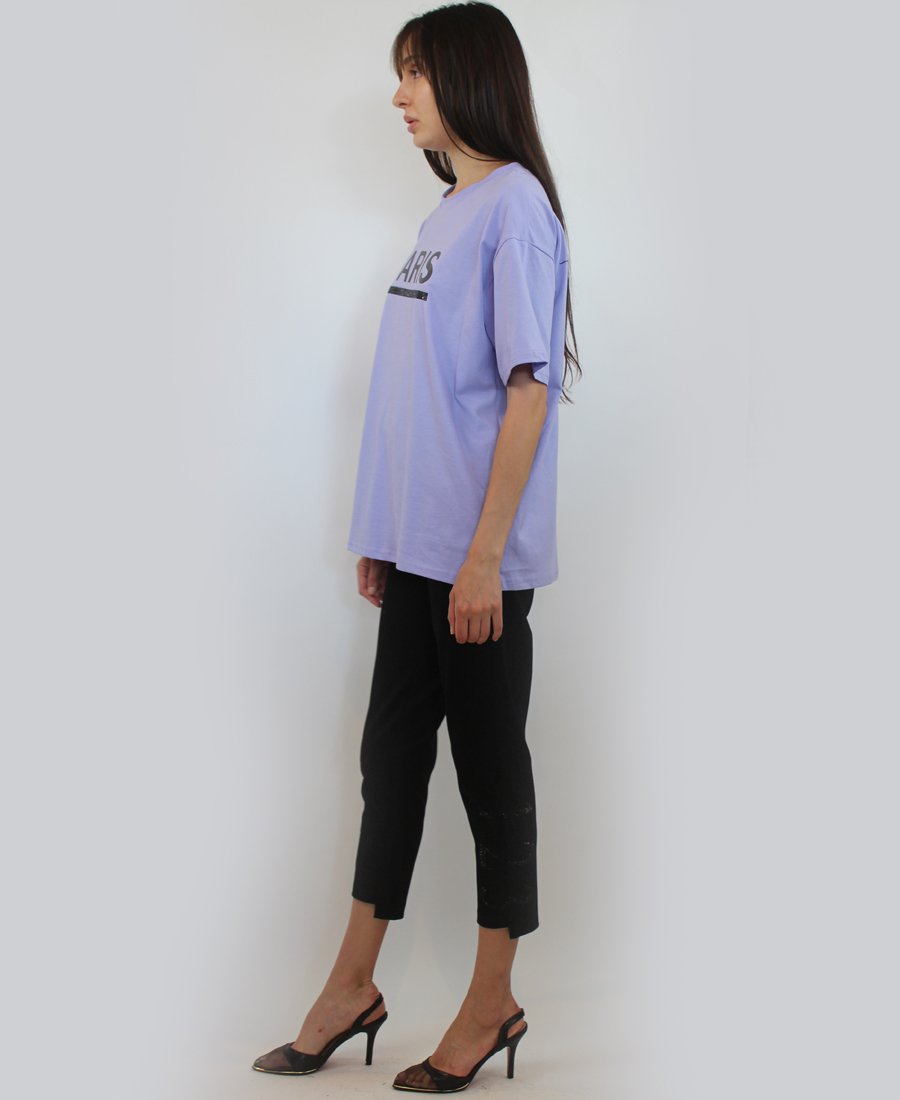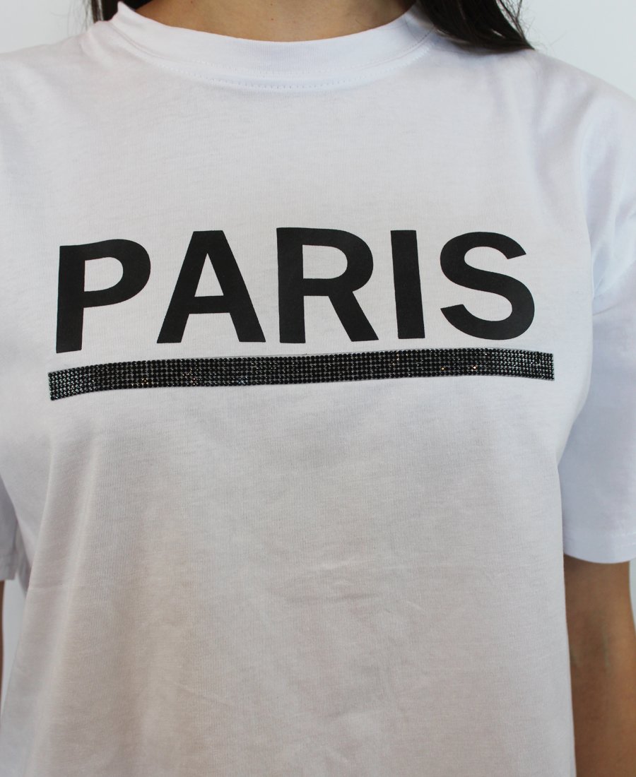 This oversized high-quality fabric t-shirt is perfect for everyday or a night out. The stunning design features a front Paris rhinestone trim print with rhinestone trim fashion girls on the back!