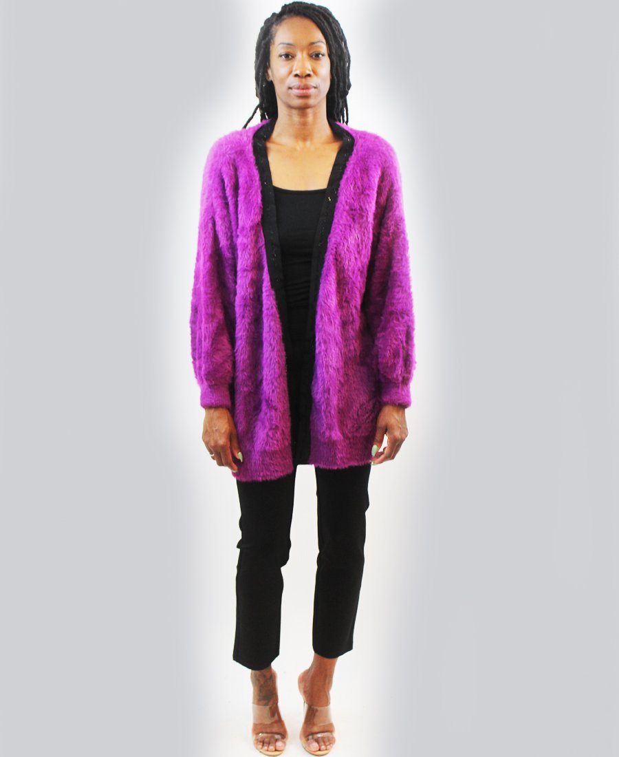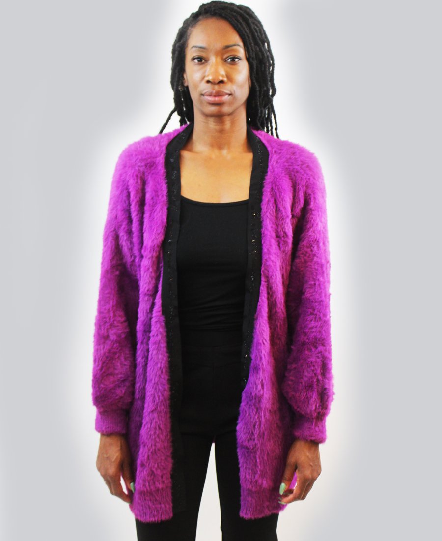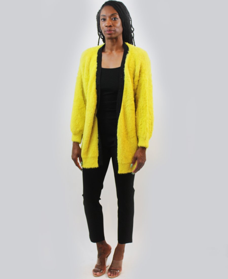 This fun-colored sweater cardigan will definitely turn heads all winter long. Stay warm in this piece.