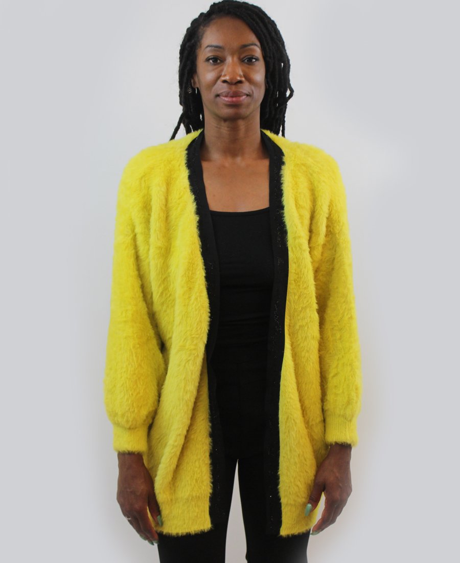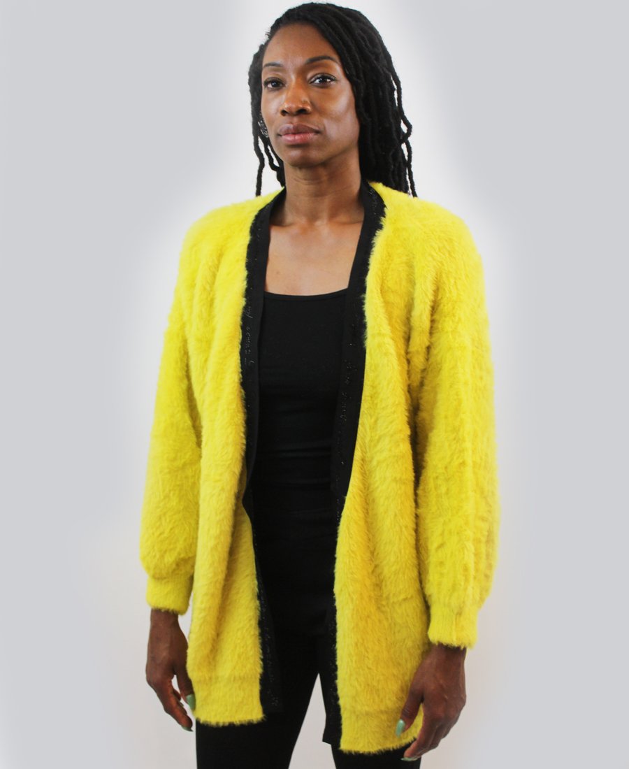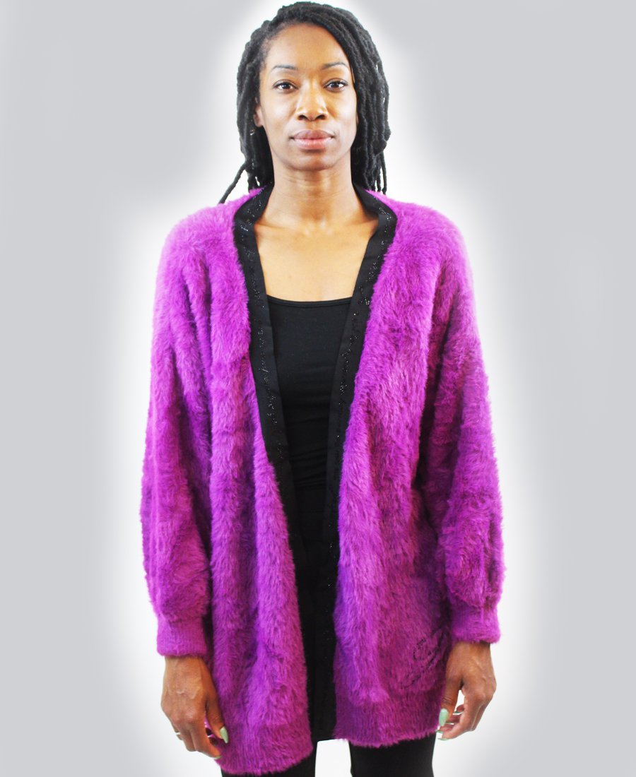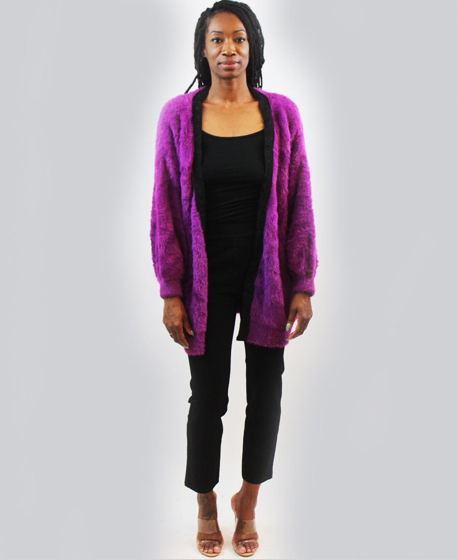 This fun-colored sweater cardigan will definitely turn heads all winter long. Stay warm in this piece.