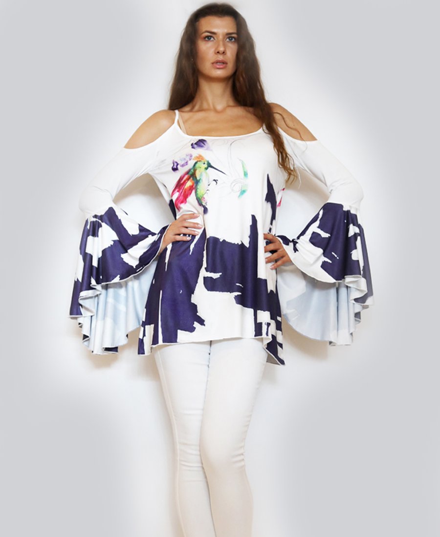 Make a statement in this bell sleeved top with this stunning design. With this pop of color, this top if perfect for any occasion.