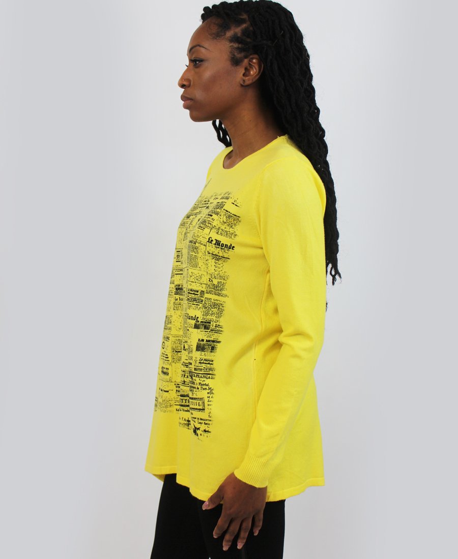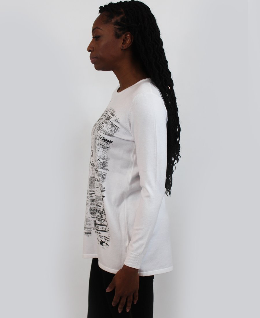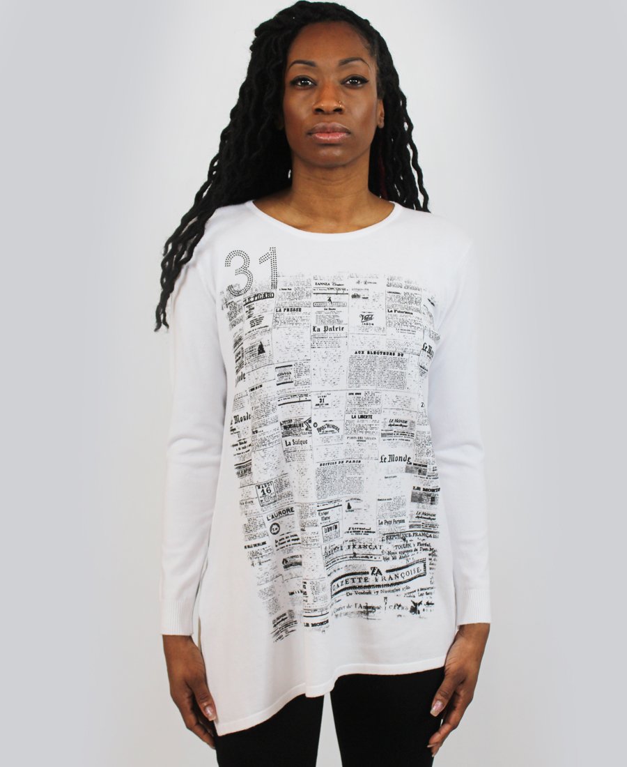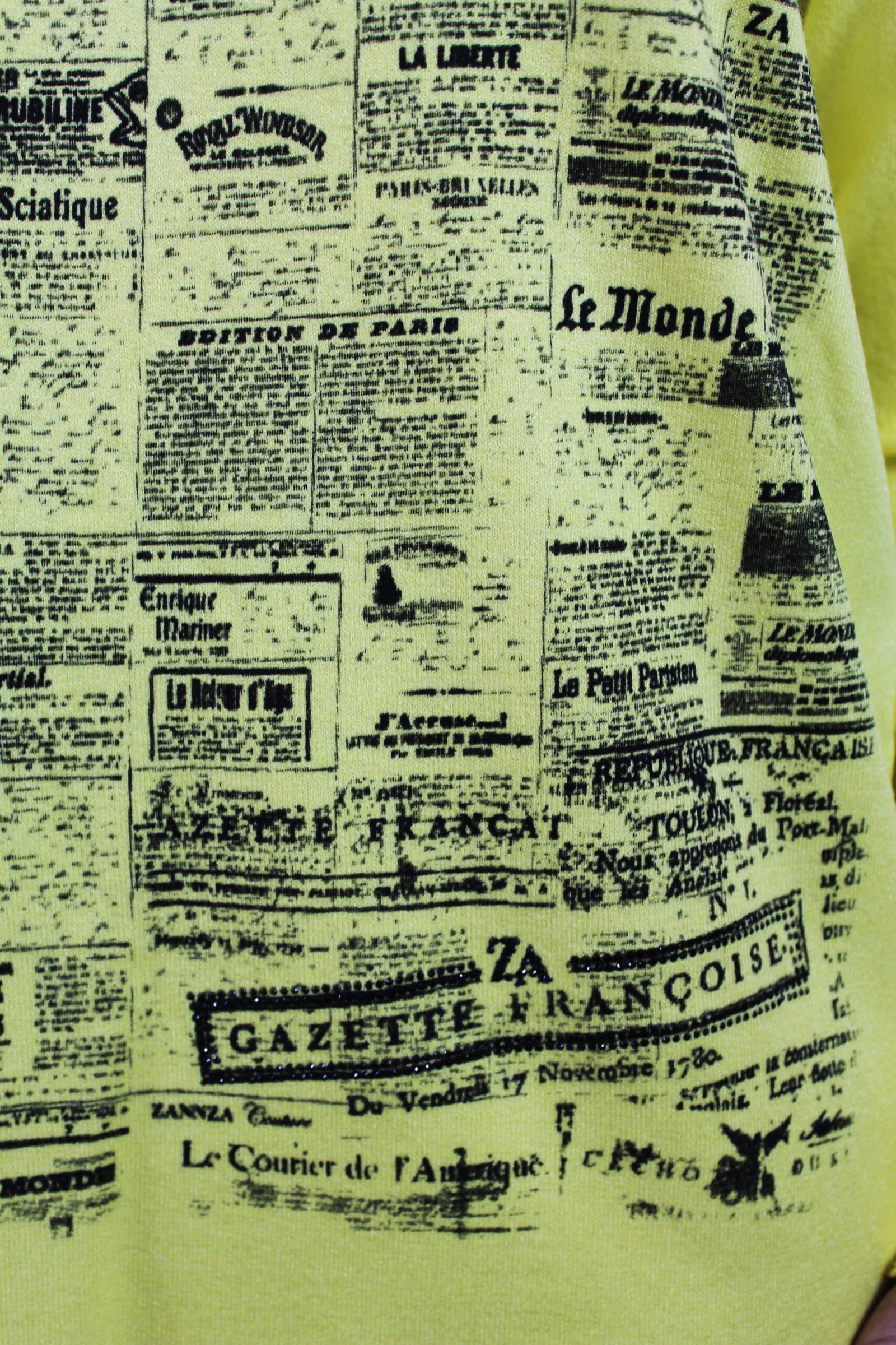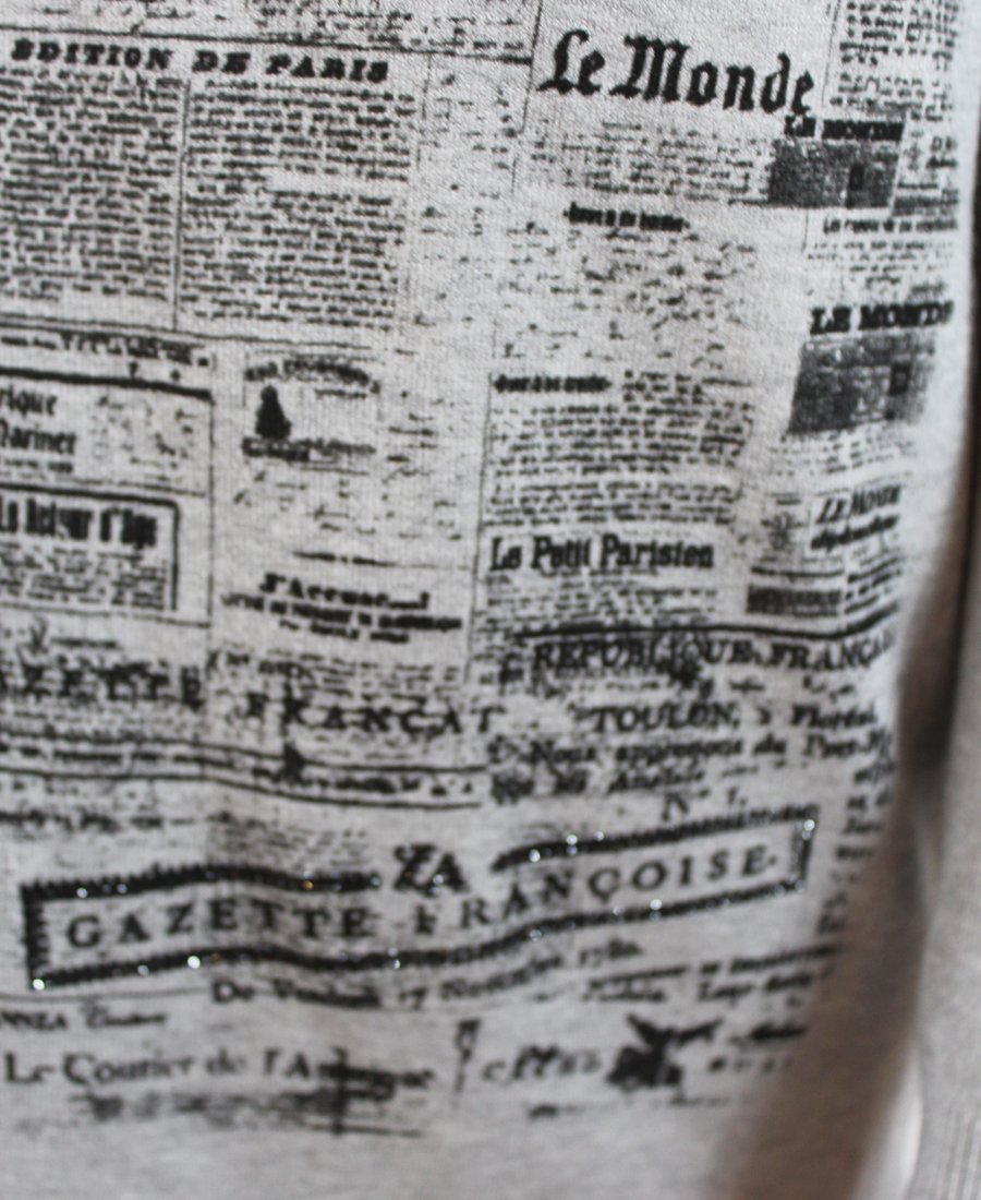French newspaper print sweater.