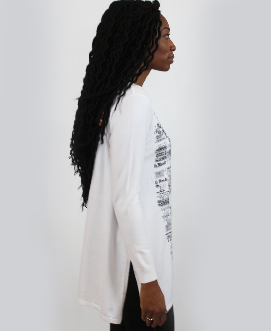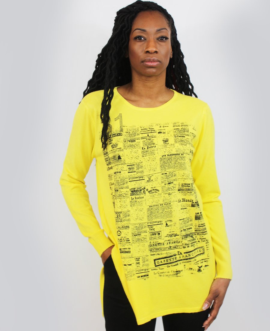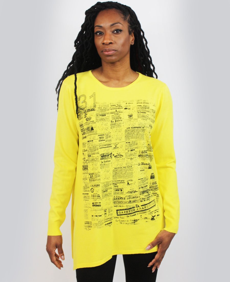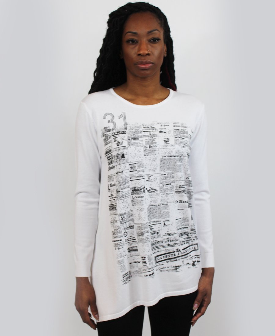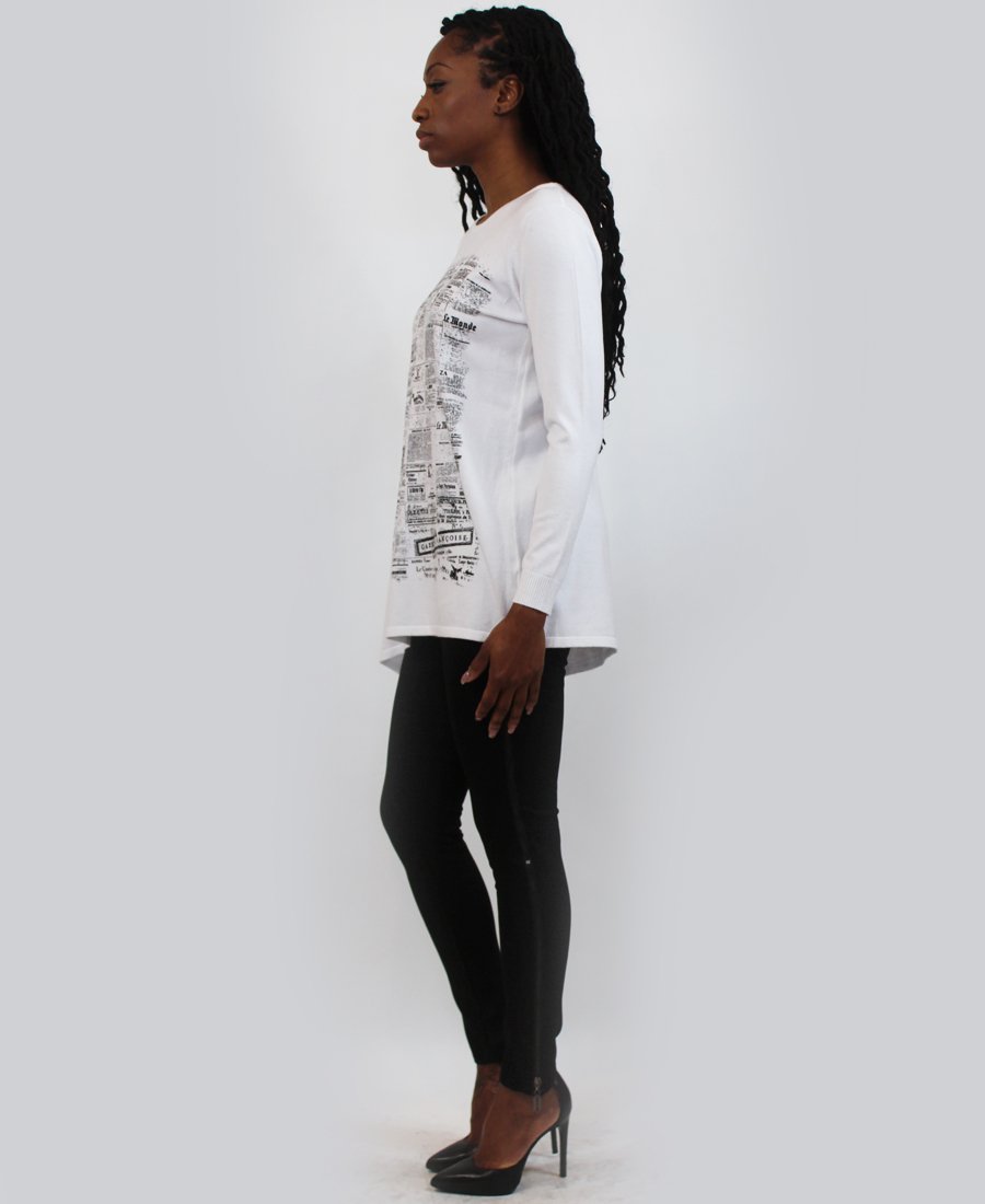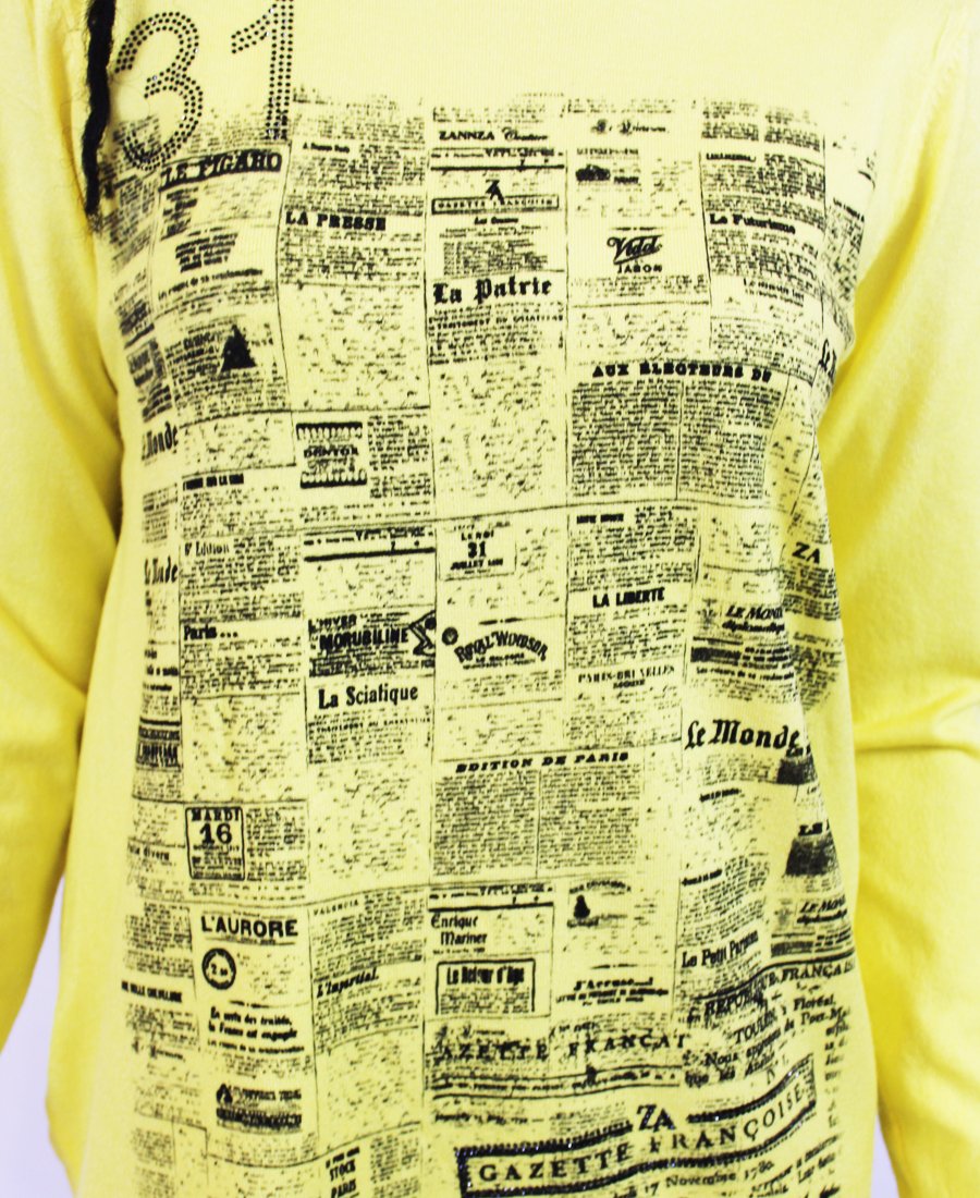 French newspaper print sweater.