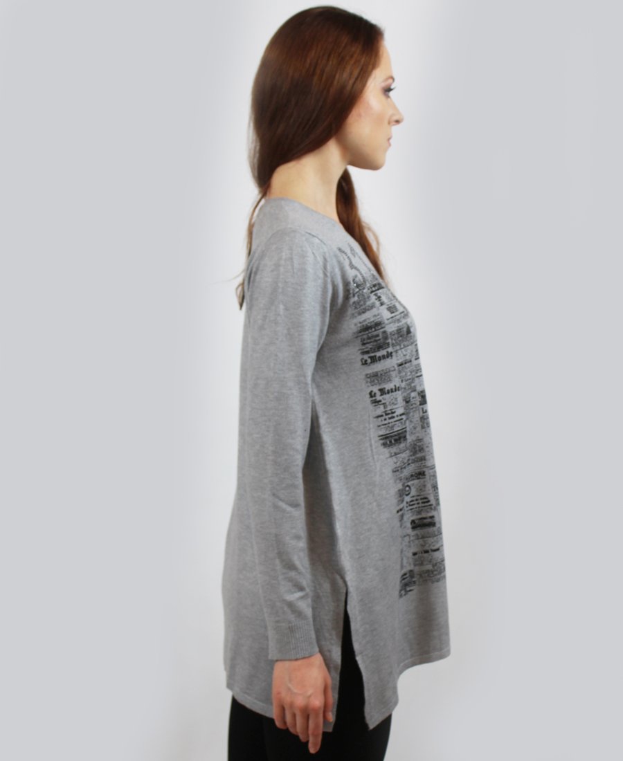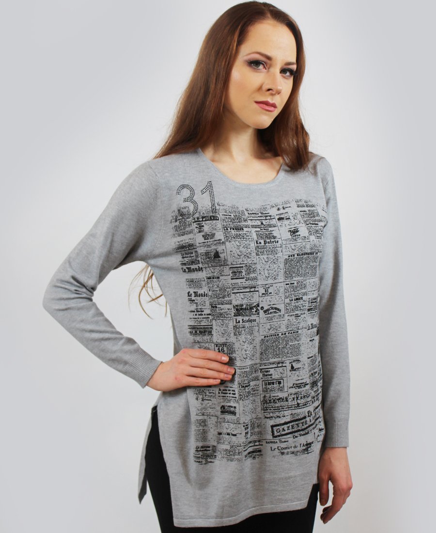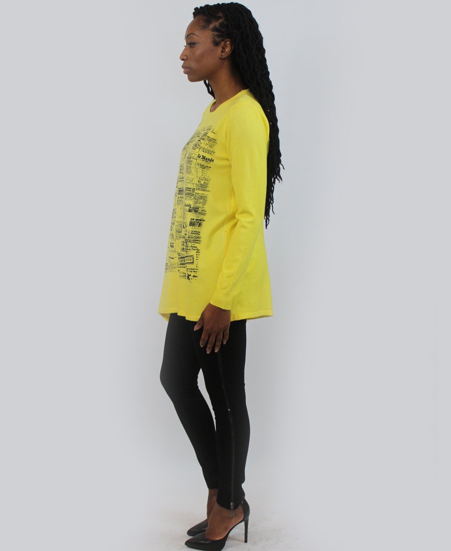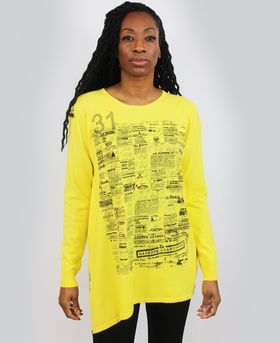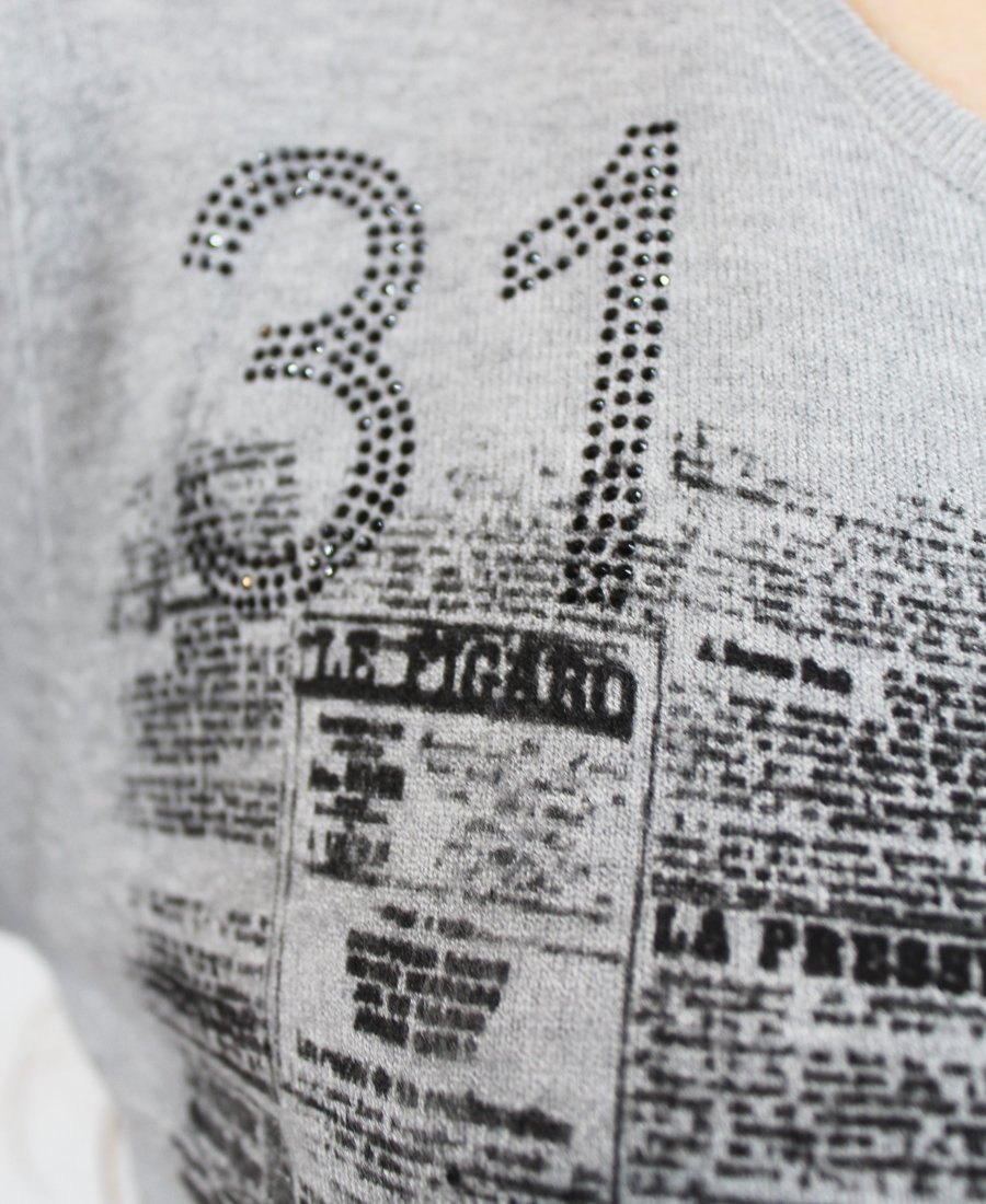 French newspaper print sweater.