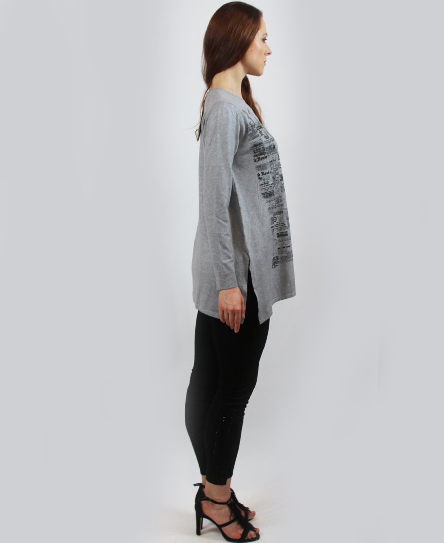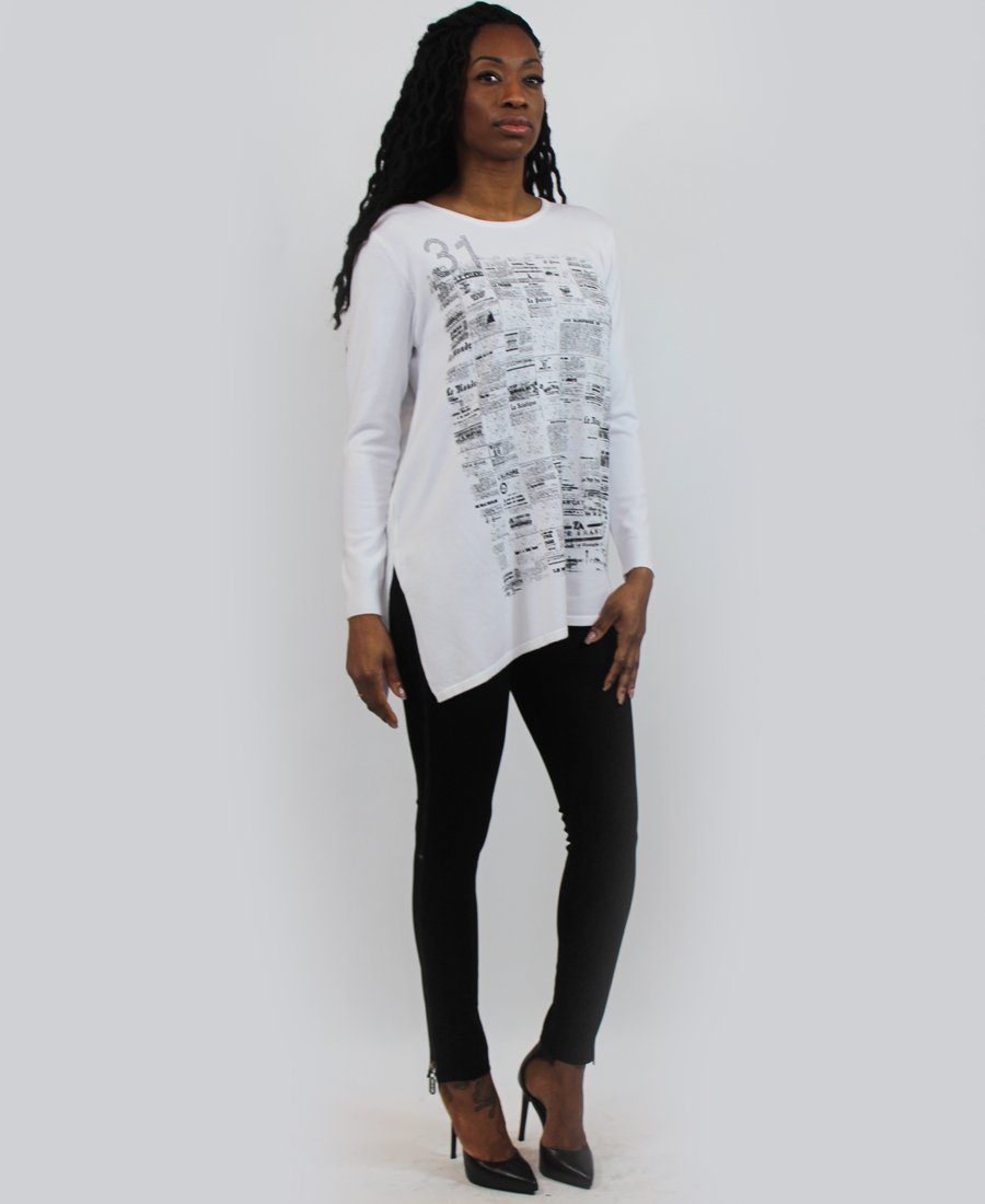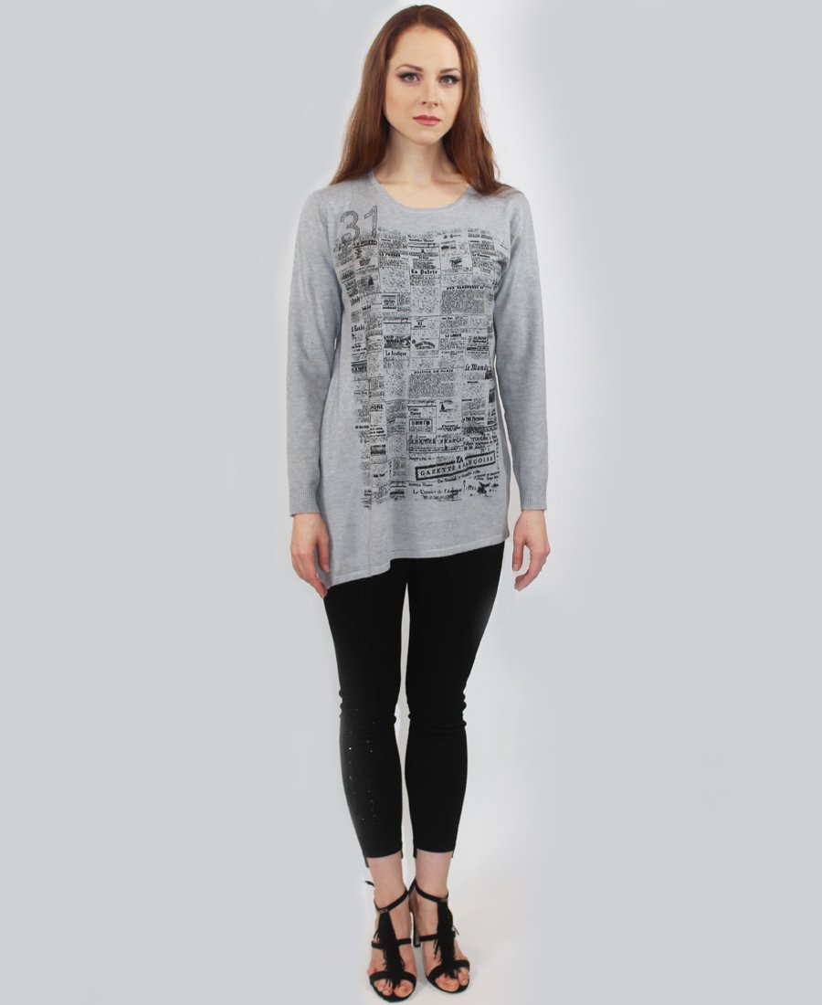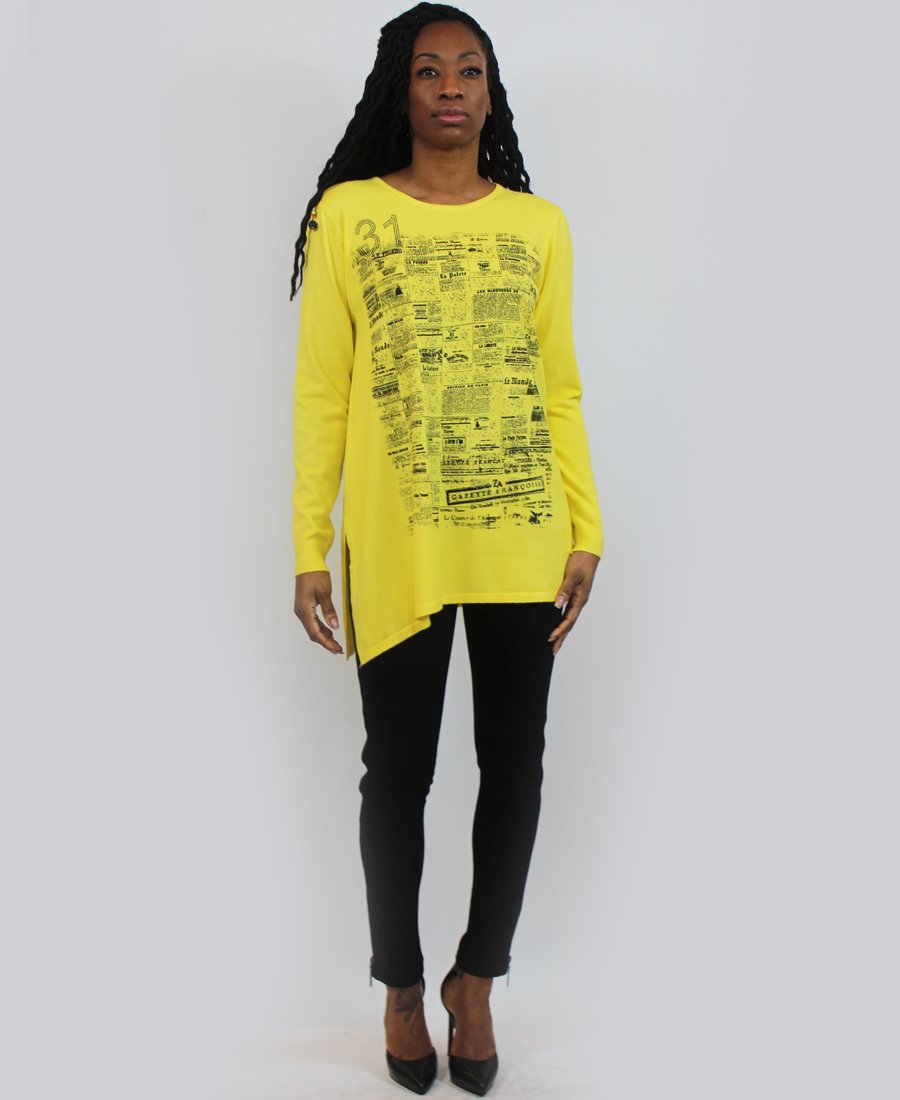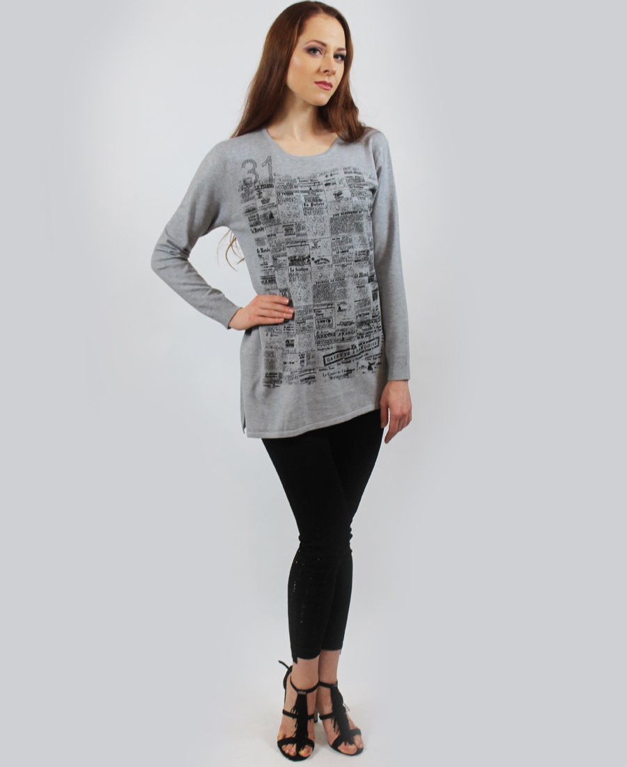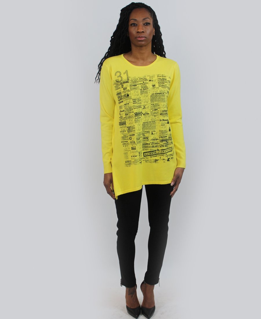French newspaper print sweater.