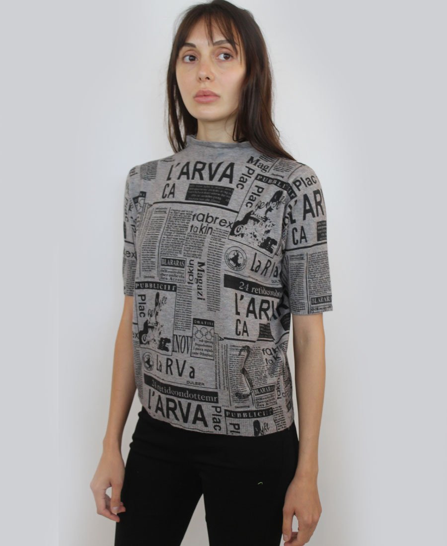 Newspaper Print Sweater SW-38-1