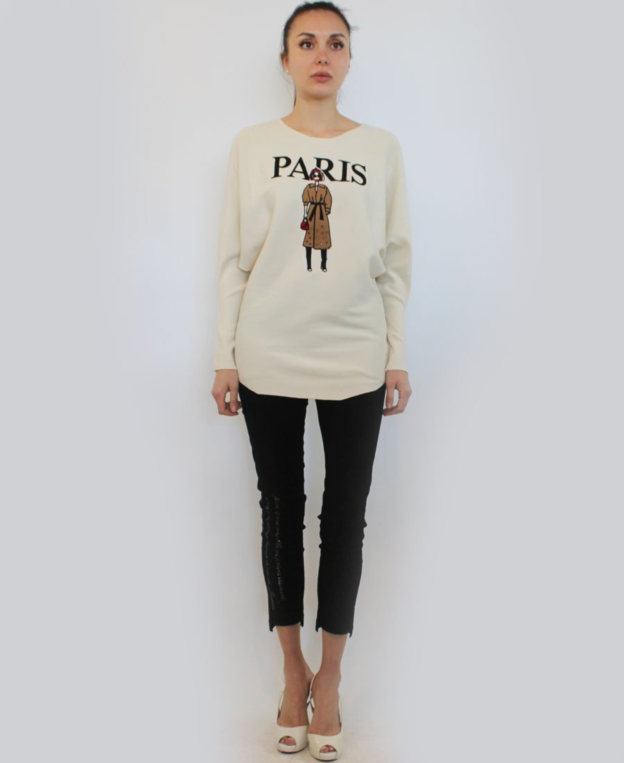 The Paris design gives this simple sweater a fun and unique look. A must have to stay warm all season long.