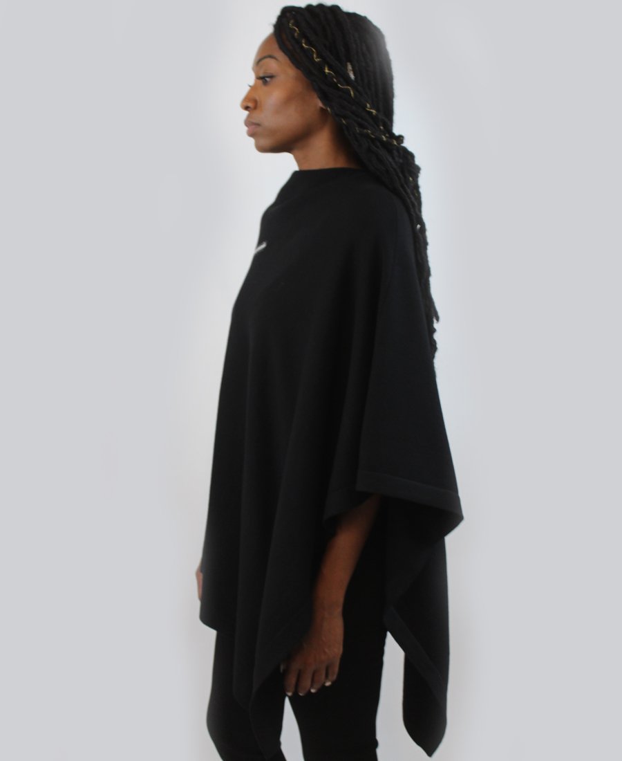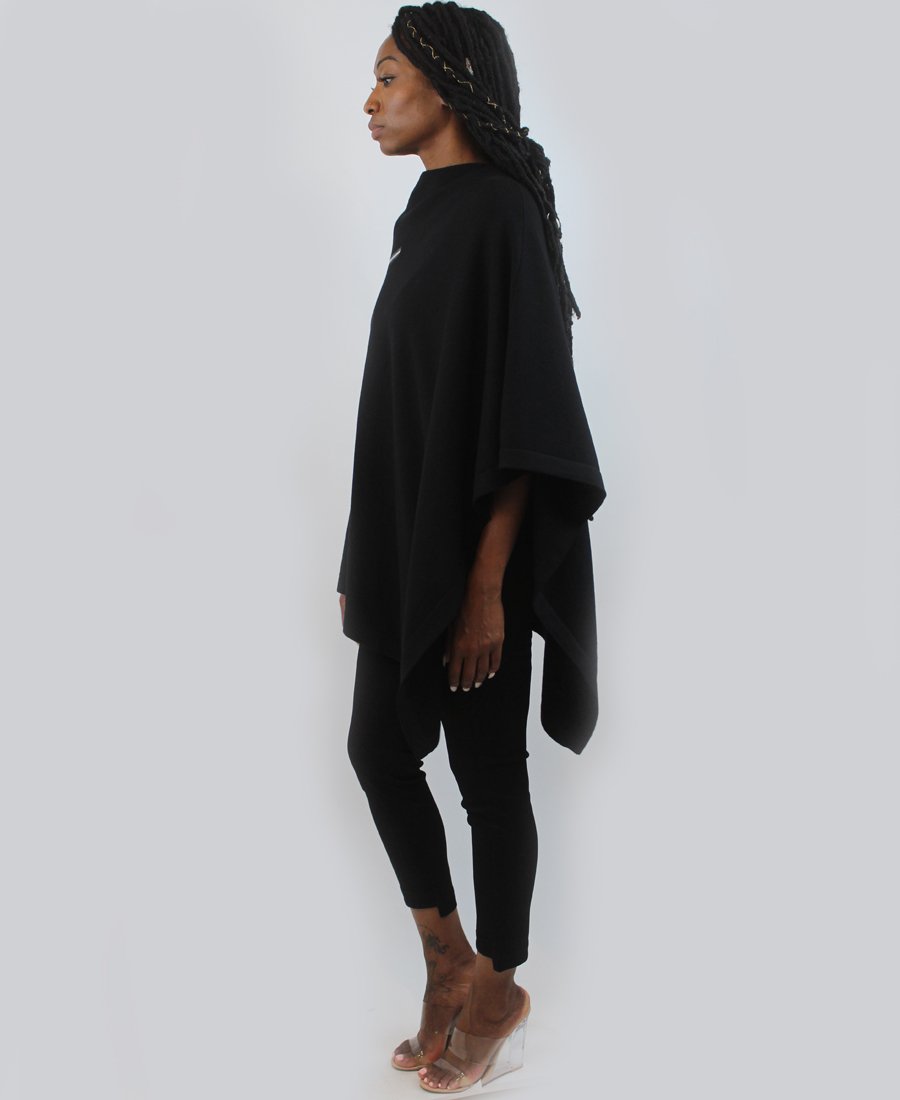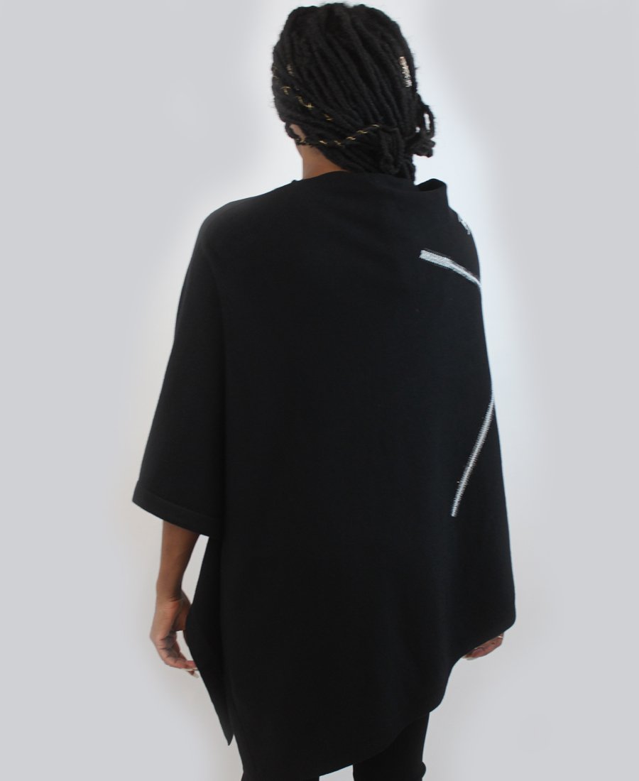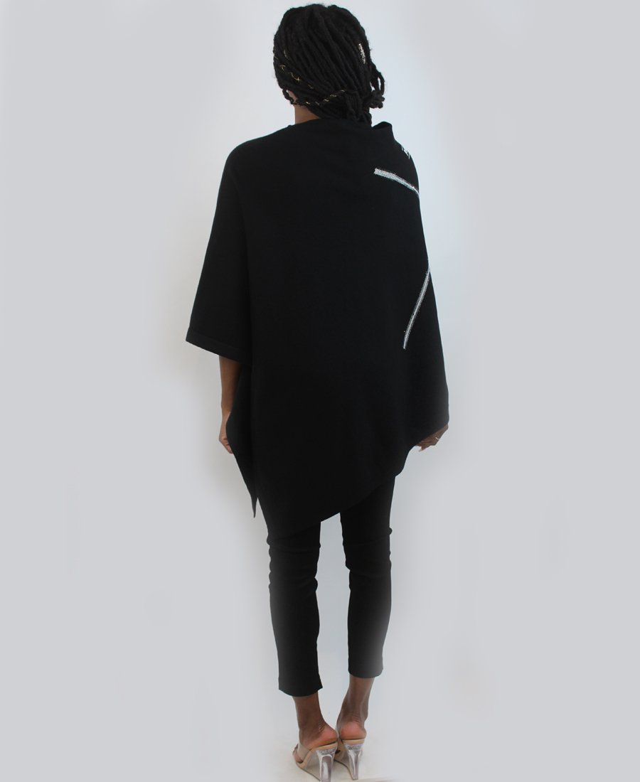 A cute poncho cape for women- ZANNZA Couture brand. Warm and comfortable, it will wrap you in cold days. It has an asymmetrical cut and round neckline.