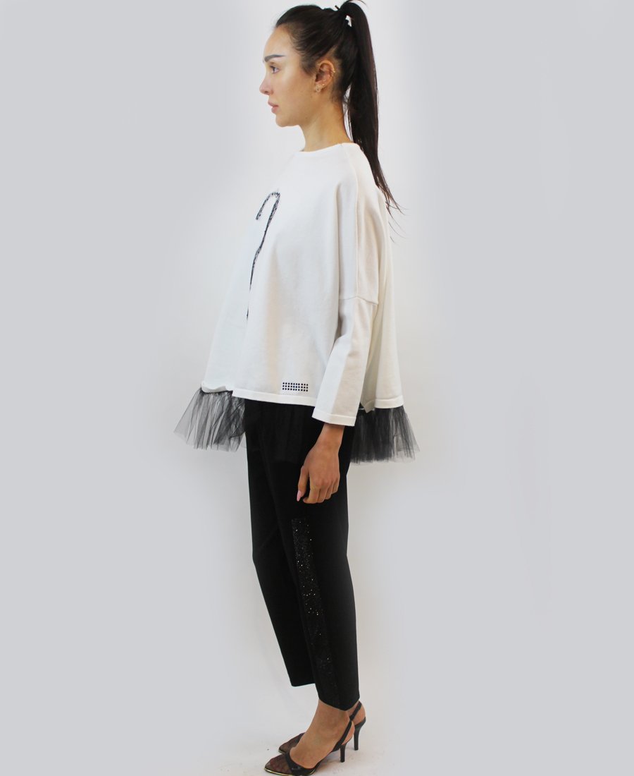 Trendy sweater with question mark. Unique sweater can be dressed up for a night out, or dressed down with sweats.